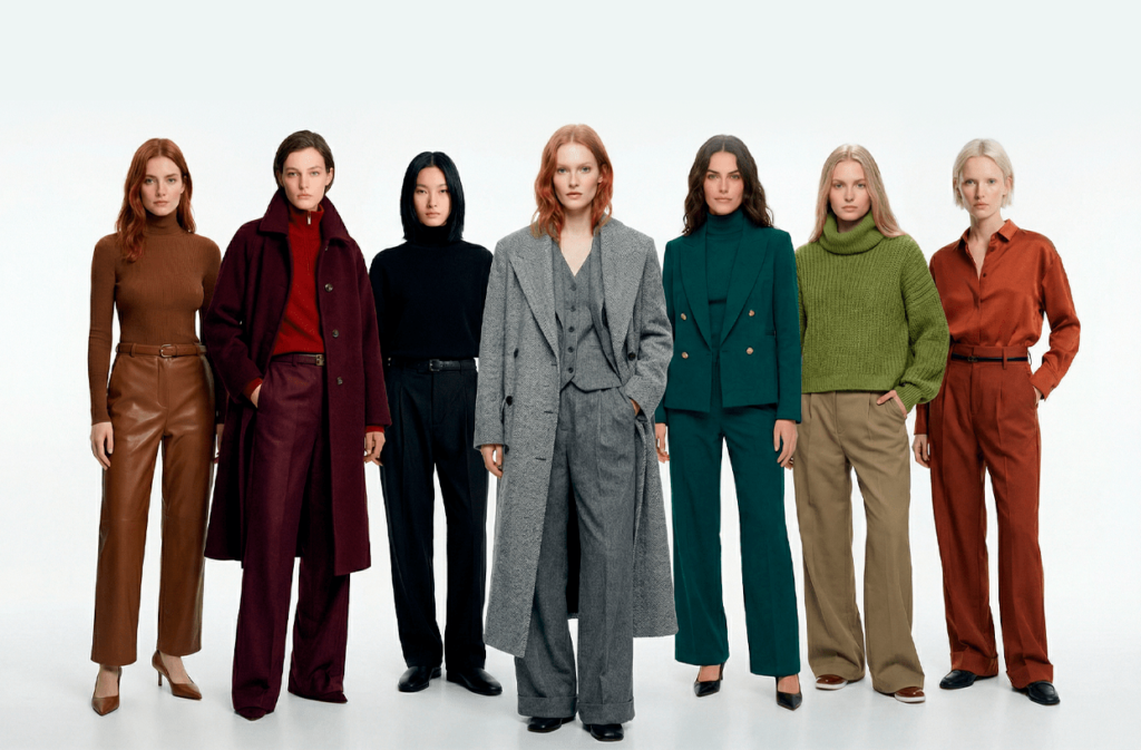 Cores como caramelo, bege, marrom, terracota e areia dominam a paleta do outono inverno 2026. Esses tons transmitem aconchego e combinam facilmente entre si, facilitando a montagem de looks harmoniosos.