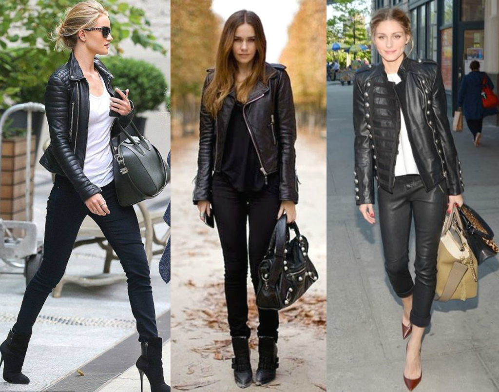 O couro, seja natural ou sintético, continua sendo um dos protagonistas da estação. Jaquetas, calças, saias e até vestidos aparecem em versões modernas e atualizadas.