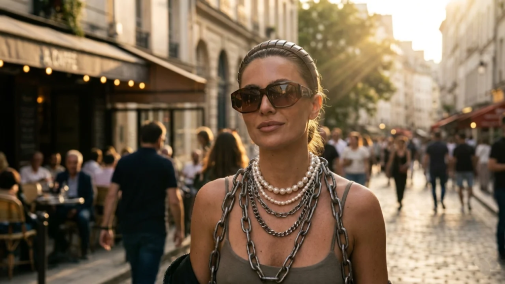 Os acessórios ganham destaque como elementos-chave para transformar o visual. Cachecóis volumosos, bolsas estruturadas, cintos largos e óculos de sol modernos ajudam a complementar os looks de inverno.